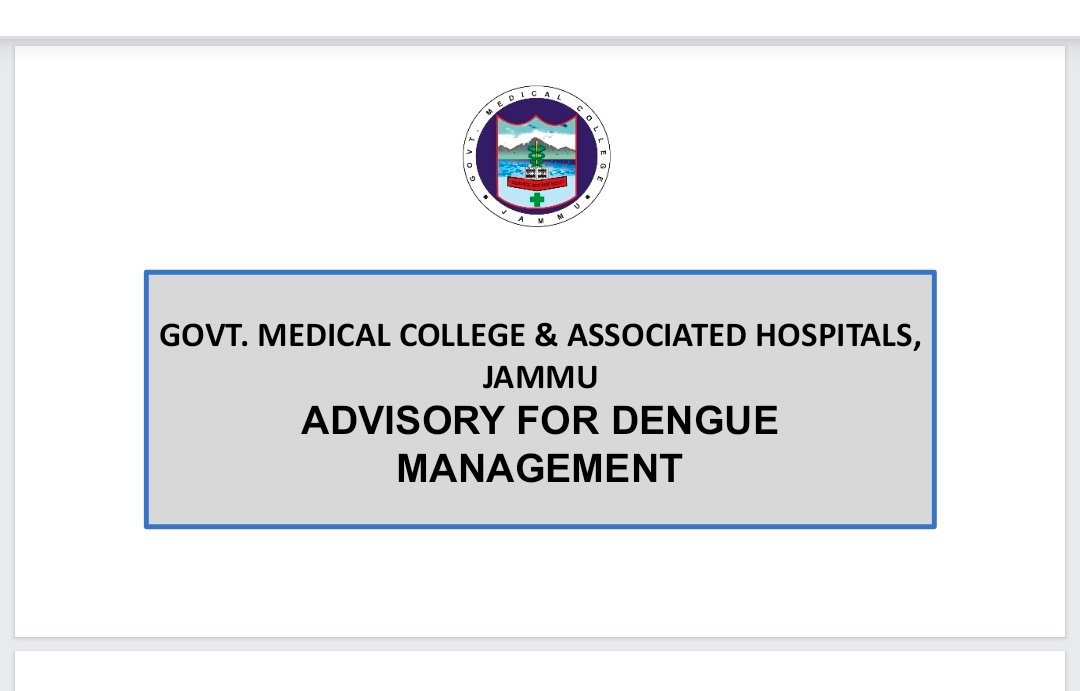 Jammu, September 26: Government Medical College (GMC) and Associated Hospitals, Jammu have issued a public advisory for the management of Dengue cases as seasonal fever cases rise in the region.